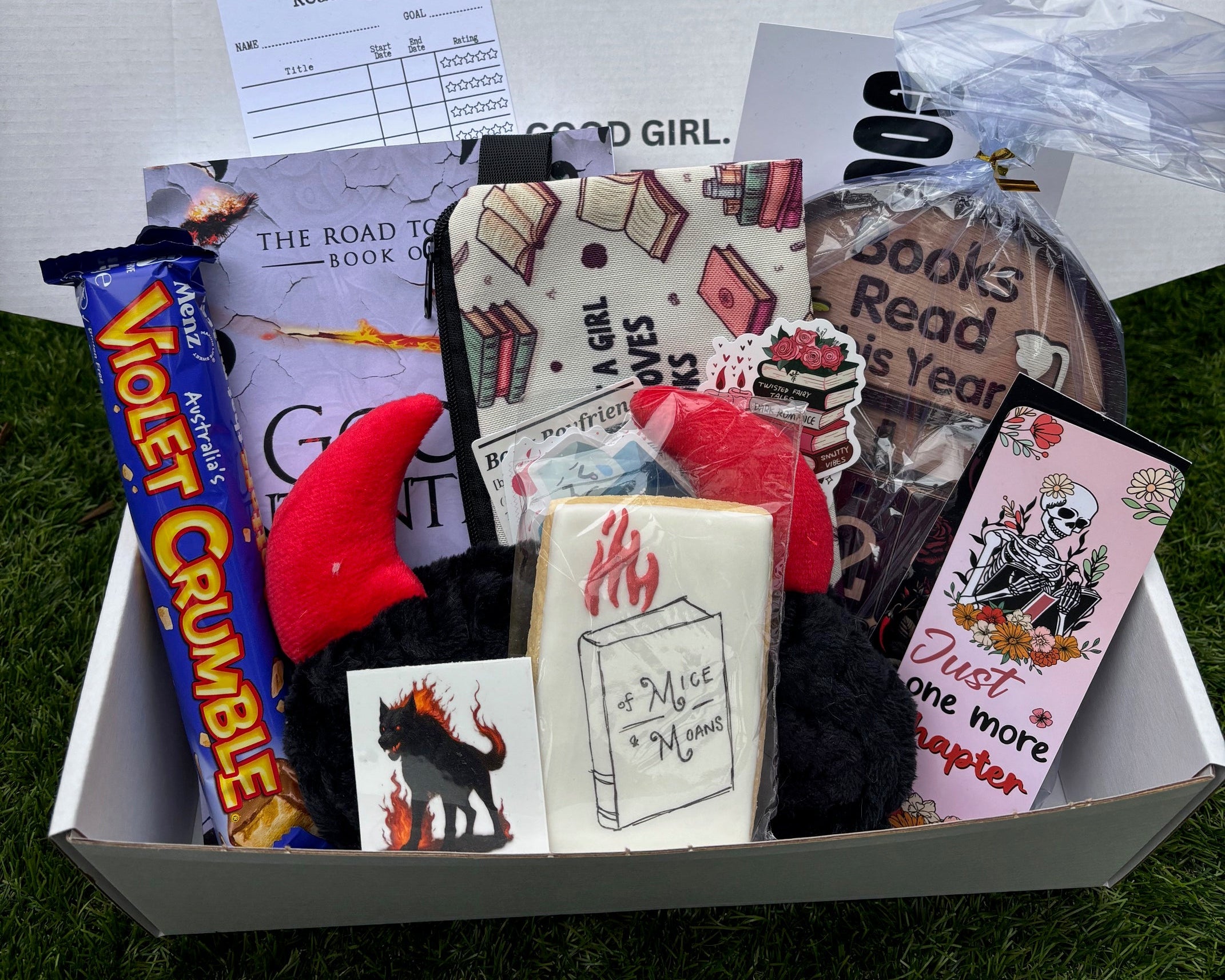 Good Girl Book Boxes is a monthly book (and goodie) subscription service focused on spicy books.